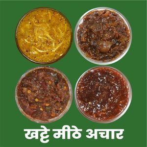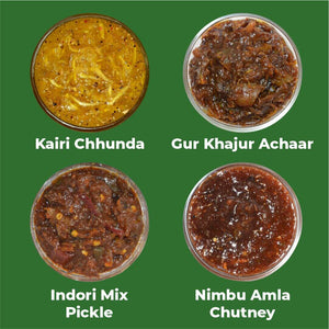Items in Combo - Gur Khajur Achaar with Nimbu, Imli, Heeng, Nimbu Amla Chutney with Kairi & Kairi Chhunda Khatta Meetha & Indori Mix Pickle - 250 grams each.