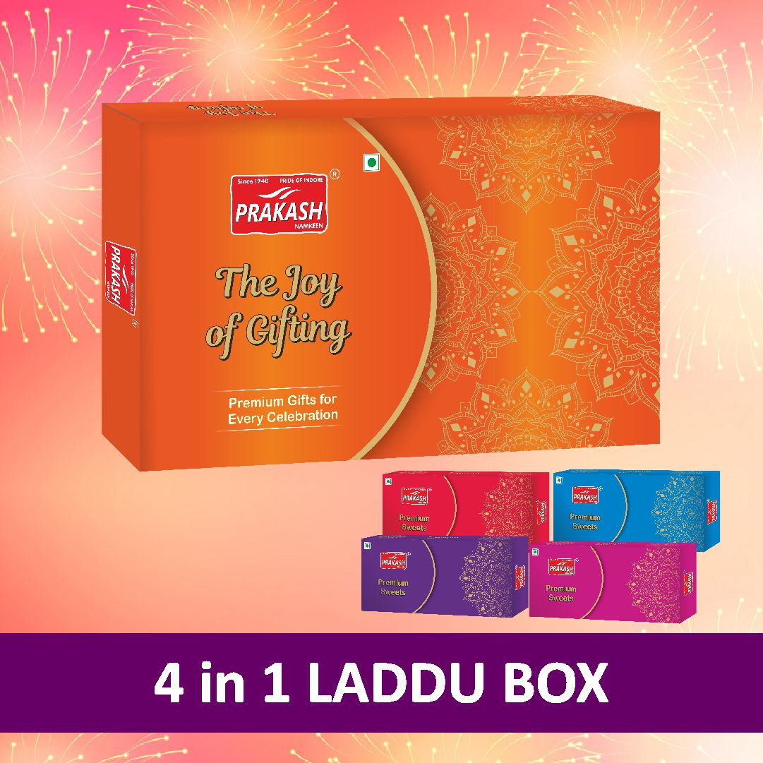 इंदौर का स्वाद - 4 in 1 Laddu Box - GIft Pack - Atta Laddu, Besan Laddu, Multigrain Laddu, Urad Gond Laddu. (All laddus with dryfruits)